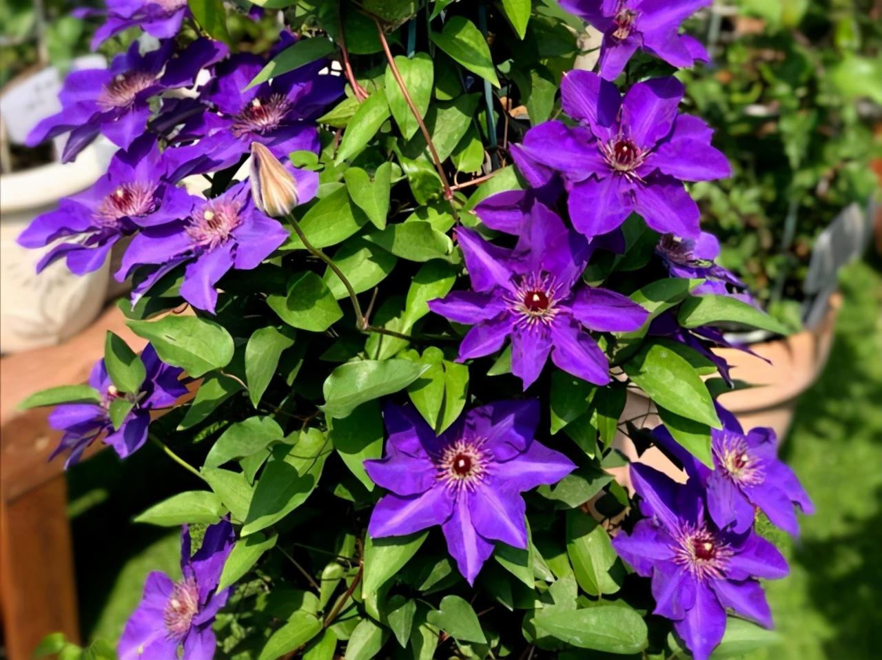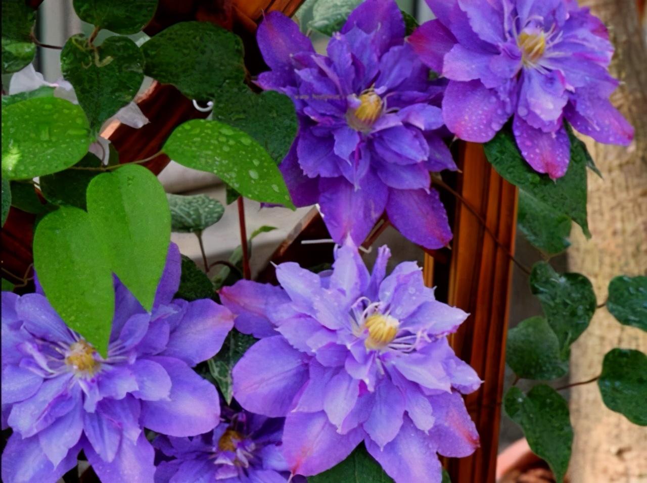 里昂村庄在铁线莲中属于那种适应性超强,并且很容易爆花的品种,如果你家有光照不好的地方,种它再适合不过了。