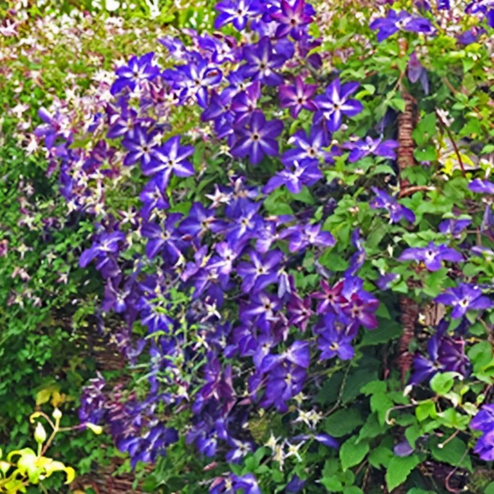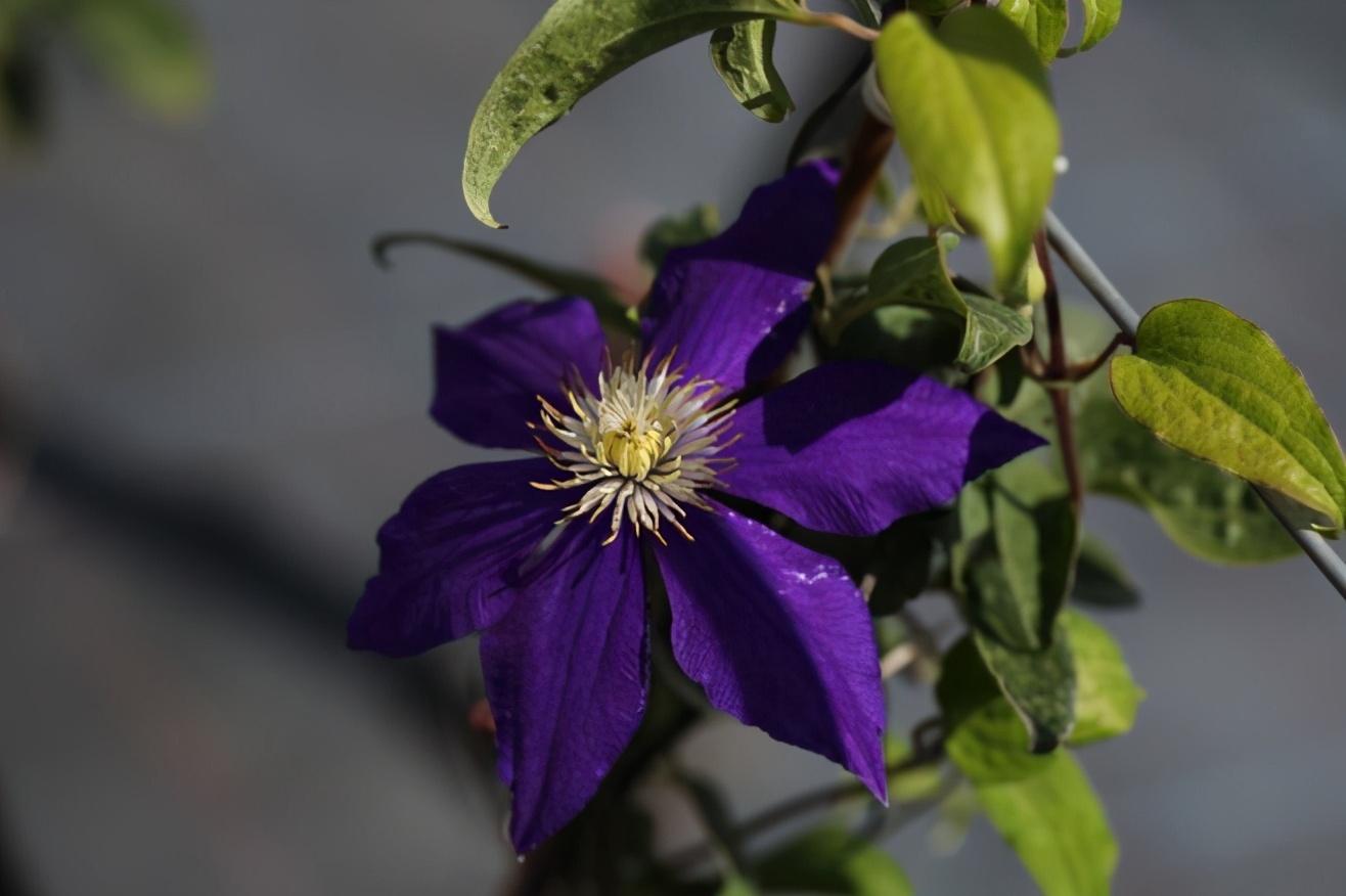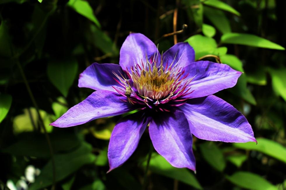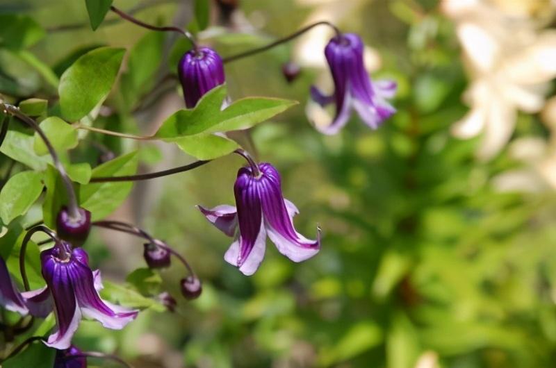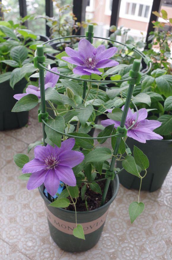 快乐的杰克也是铁线莲中的一个需要购买的品种,它的花色为深紫色,有着健壮的生命力,极易将其养活使它开花进行观赏。其枝条就有攀爬性,养护时需为其搭建支架,并要在2月左右剪枝保持长度为20cm,以促使它开花更多。