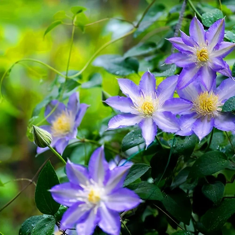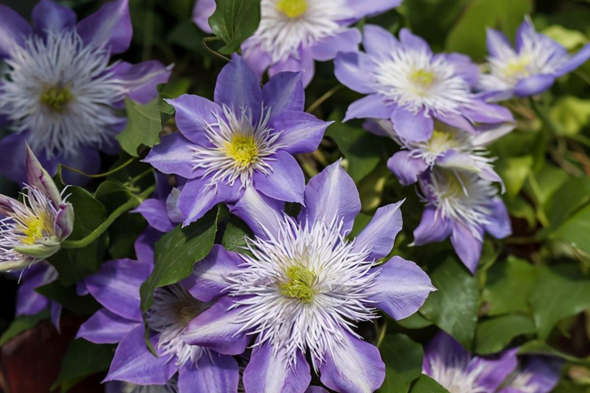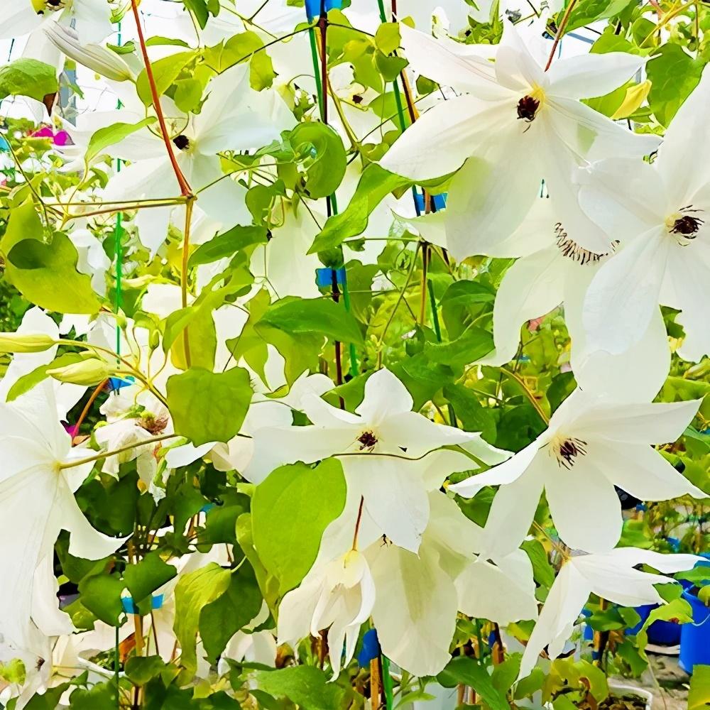 在铁线莲中总统也是一个必买的品种,它属于开花较早并且花朵较大的一个品种,有着花色为蓝紫色的花朵,远远望去十分美丽。总统铁线莲有着旺盛的生命力,耐热能力好,属于非常具有欣赏价值的蓝色系铁线莲。它很好养,对环境没有苛刻的要求,在夏季非常热的时候,都能开花。它的花朵形状很大,适合放在花园中或者家中,曾被誉为最皮实好养的铁线莲品种,非常适合做篱笆或者花墙。