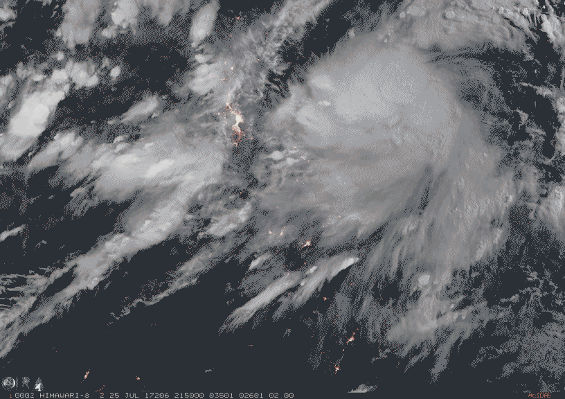 7月26日早晨的精细云图动画可见纳沙台风的中心对流像开水一样翻滚,核心旋转越发明显