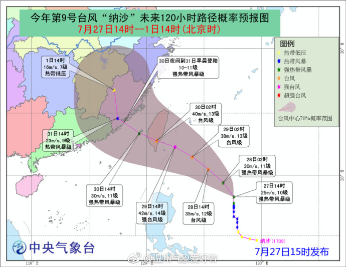最后提醒一下,今年第9号台风纳沙,在7月26日上午菲律宾以东的西北太平洋面上生成。