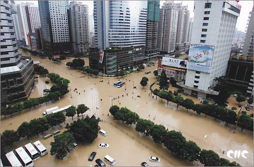 2005年受台风“龙王”肆掠的福州城区
