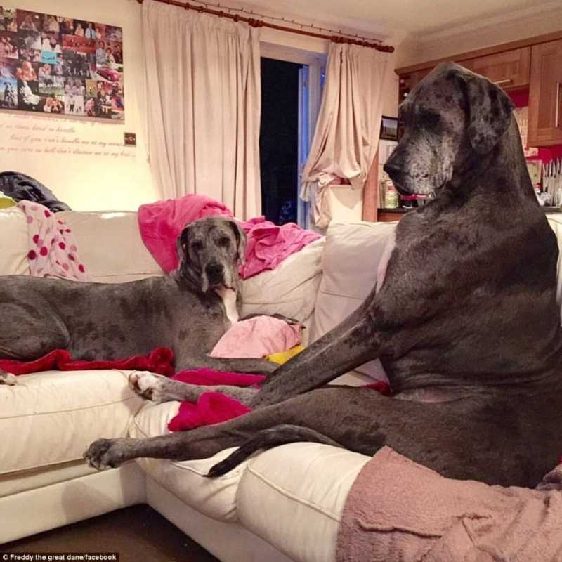 世界上最大的狗排名第2大乔治犬 美国亚利桑那州有一只109厘米高的4岁大丹狗,这只大丹狗名叫大乔治Giant George,不单高其它狗一等,而且体重达245磅111公斤,十分巨型,当坐在沙发上,更显得女主人克里斯廷十分。