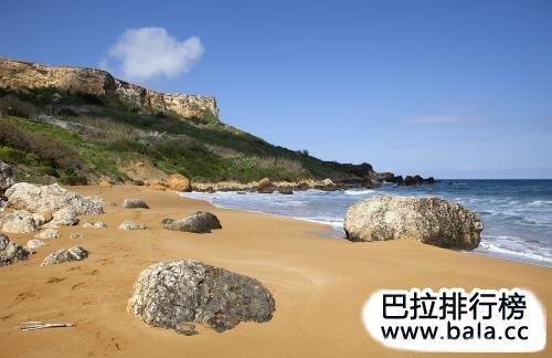 火山灰以及周围岩石中的金色石灰石共同造就了桔黄色的沙子,无数沙子汇聚在一起便形成了马耳他戈佐岛的朗姆拉·艾尔-哈姆拉湾与圣布拉斯海滩。圣布拉斯海滩面积相对较小并且更加孤立,所有这些特征使其成为这个地中海国家更适于享受日光浴和欣赏独特自然风光的所在。