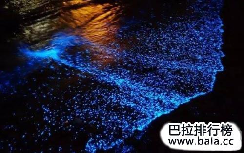 马尔代夫生物发光海滩,这些海滩“繁星”就是海中那些发光的浮游植物,包括单细胞藻类和蓝藻。在外力的作用下,它们就开始活跃起来,变成“游荡的星星”。就像科幻小说或童话故事一样,它的生物发光是一个奇观,数百万的浮游生物聚集在水边,创造了一种神奇的发光效果。这些微小的有机体使用一种叫做荧光素的化学物质来抵御捕食者。发现浮游生物的最佳时间是在仲夏到冬季。