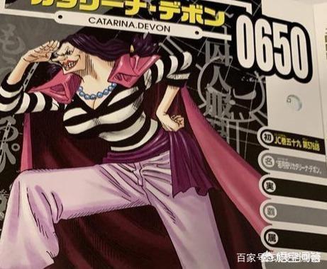 资料显示她被称为最凶恶的女海贼,大妈都没得到这个名号,被她抢了……她的名号来自于她看见漂亮的女海贼之后就会将对方打败,并且还把对方的脑袋收集起来。由于穷凶极恶,所以被历史抹杀!
