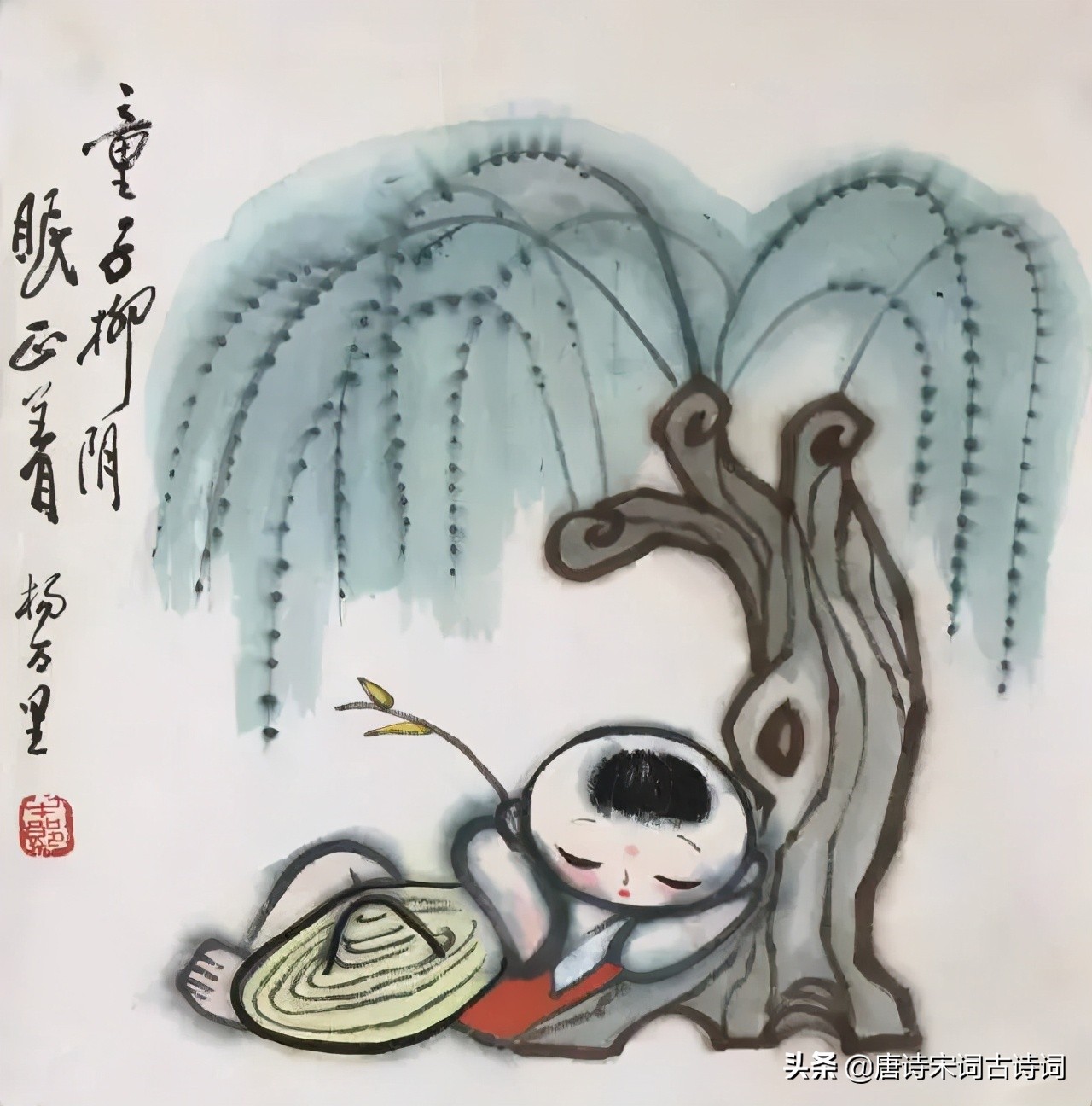 童子柳荫正眠着,一牛吃过柳荫西。