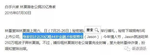 关于她老公莫赞生的信息,那会新闻介绍是背景相当优秀,虽然比林夏薇年长16岁,但是难得的金融才俊。