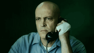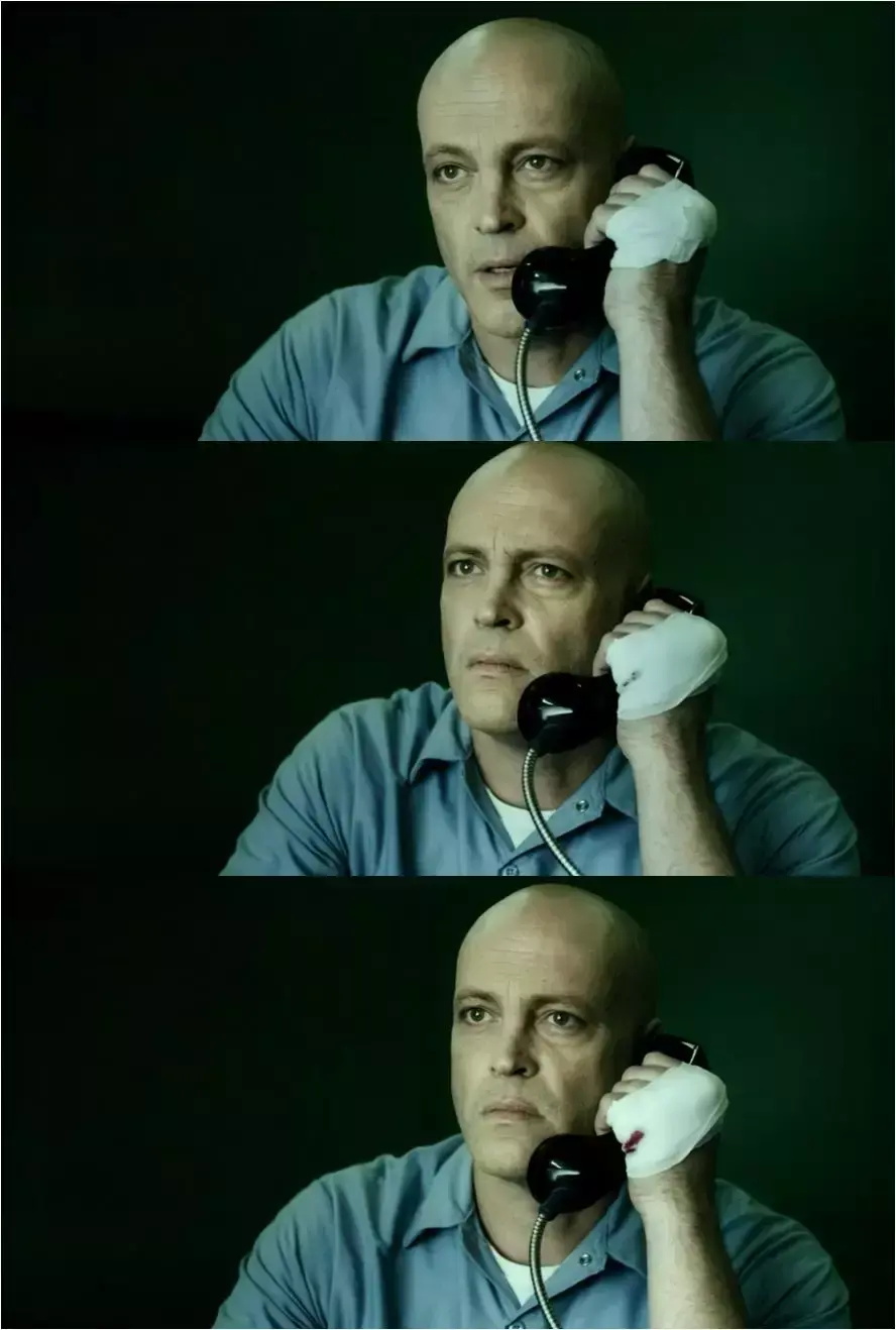 来探监的人说,已经把他的妻子捉住作为威胁,阿汤哥的表情逐渐变僵。
