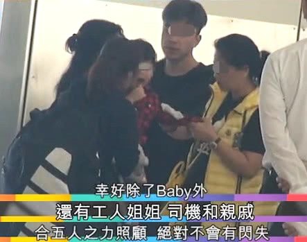 现身机场的 baby 身穿黑色 T 恤加牛仔裤,戴一顶简单的鸭舌帽,素颜朝天,穿着红色格子衬衣的儿子被工作人员抱在怀里,baby 则是拿着小海绵的外套紧紧跟在旁边,不知道是可爱的小海绵说了什么,逗得三个人一起笑了起来,场面看起来十分温馨。