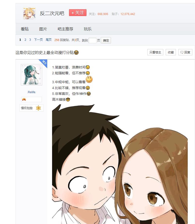反对二次元,但这里的内容却充斥着二次元相关的问题,比如这个帖子,主题是“这是你见过的史上最全动漫打分贴”。