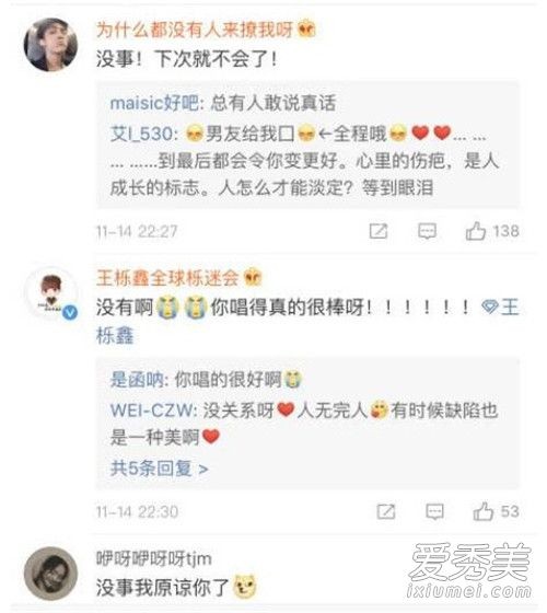 其实每个人都有失误的时候,下回keep住好状态就好啦!不过,栎鑫主动发文认错唱砸了,好真诚。网友们看到微博后也纷纷留言安慰说:“没事!下次就不会了!”“没有啊,你唱得真的很棒呀!”“出张新专辑就原谅你。”