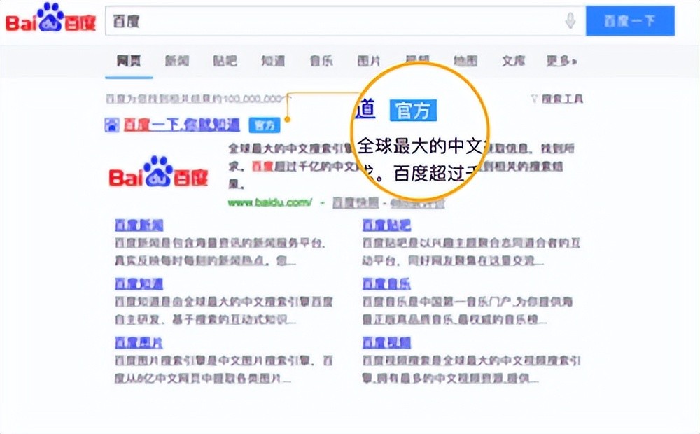 百度在核实身份真实性、经营稳定性、资质归属权等资料后,对网站进行官方网站认证,在强关联关系的触发词下展示“官方”标识;