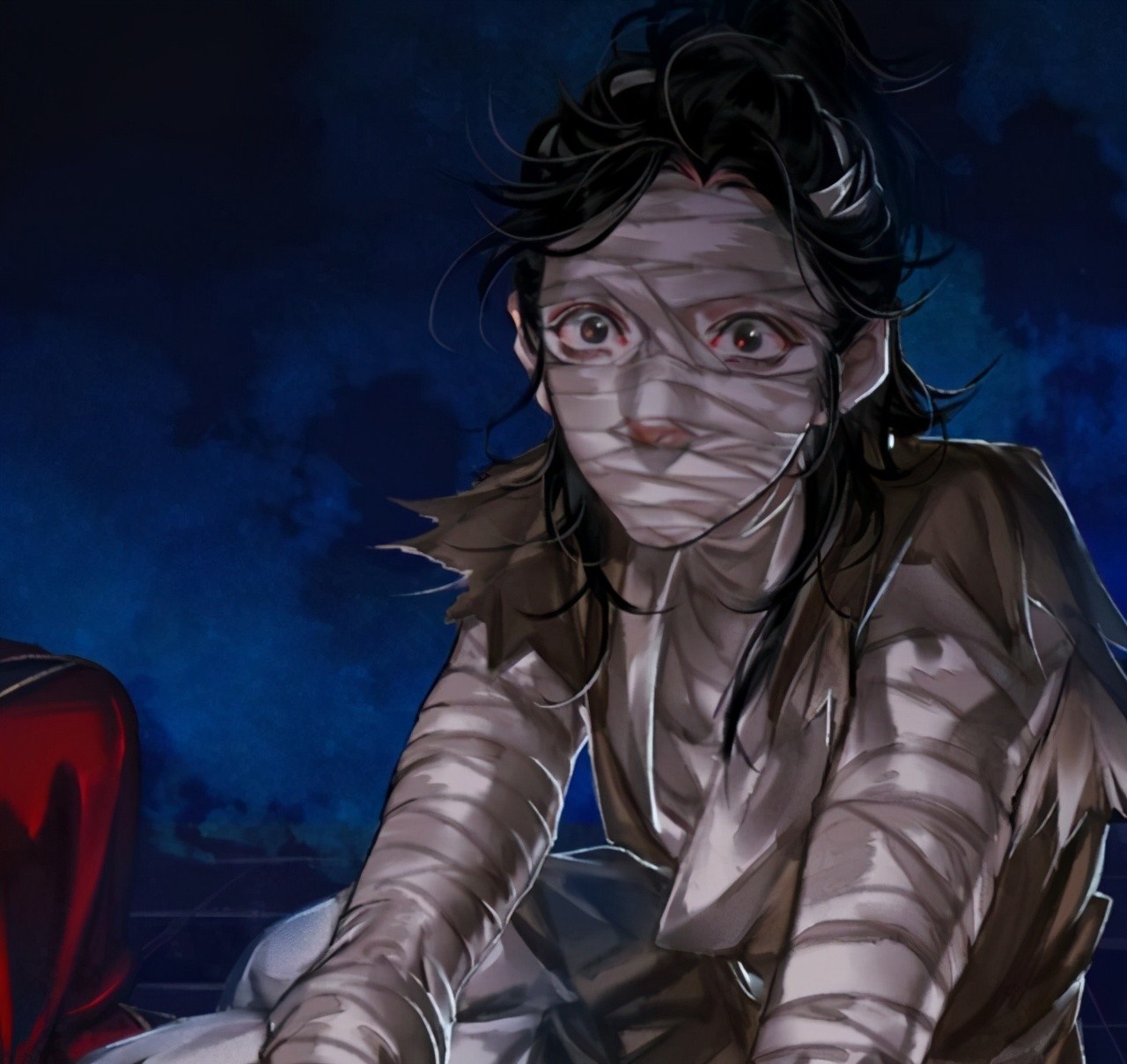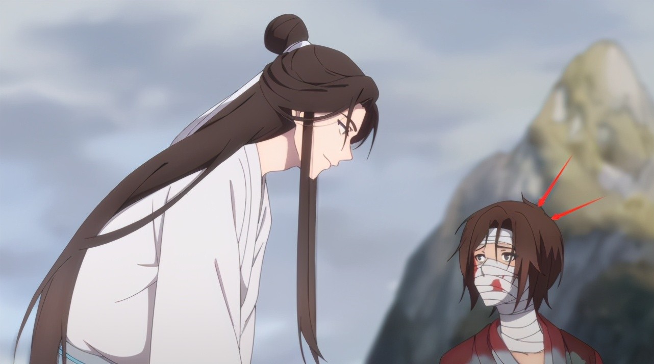 就在此时,细心的谢怜注意到了绷带少年的头上也有伤,便提议让他取下绷带为他治疗一下,看下伤势如何,而随着少年缠在脸上的绷带被解开,少年脸上的伤疤也出现在众人面前。在谢怜准备帮少年除去绷带,治疗伤势的时候,却是发现少年身上有着很多伤疤。没想到绷带少年整张脸都爬满了"人面疫"!看来也是不禁让谢怜回想起了自己国家覆灭之时的事情了,怪不得谢怜也是被吓了一跳呢。