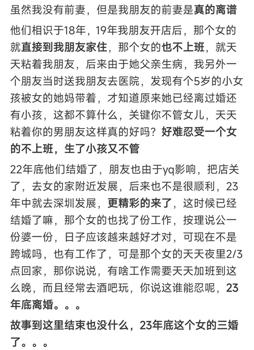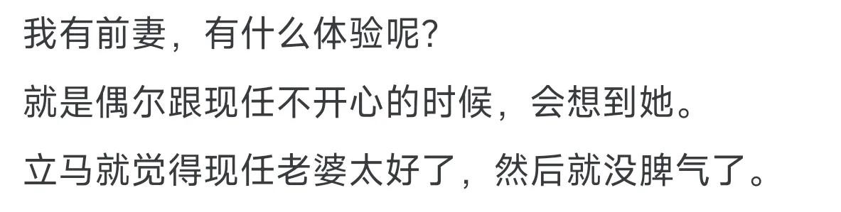 今日话题:有前妻是一种什么体验?一起来看看网友怎么说的吧。
