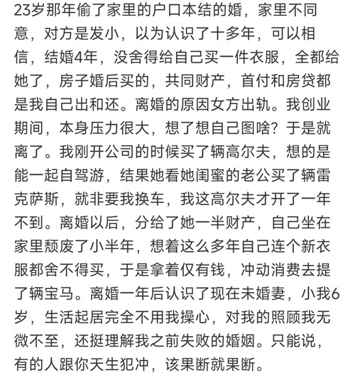 其实你前妻对你挺好的,至少她陪你一起吃苦。