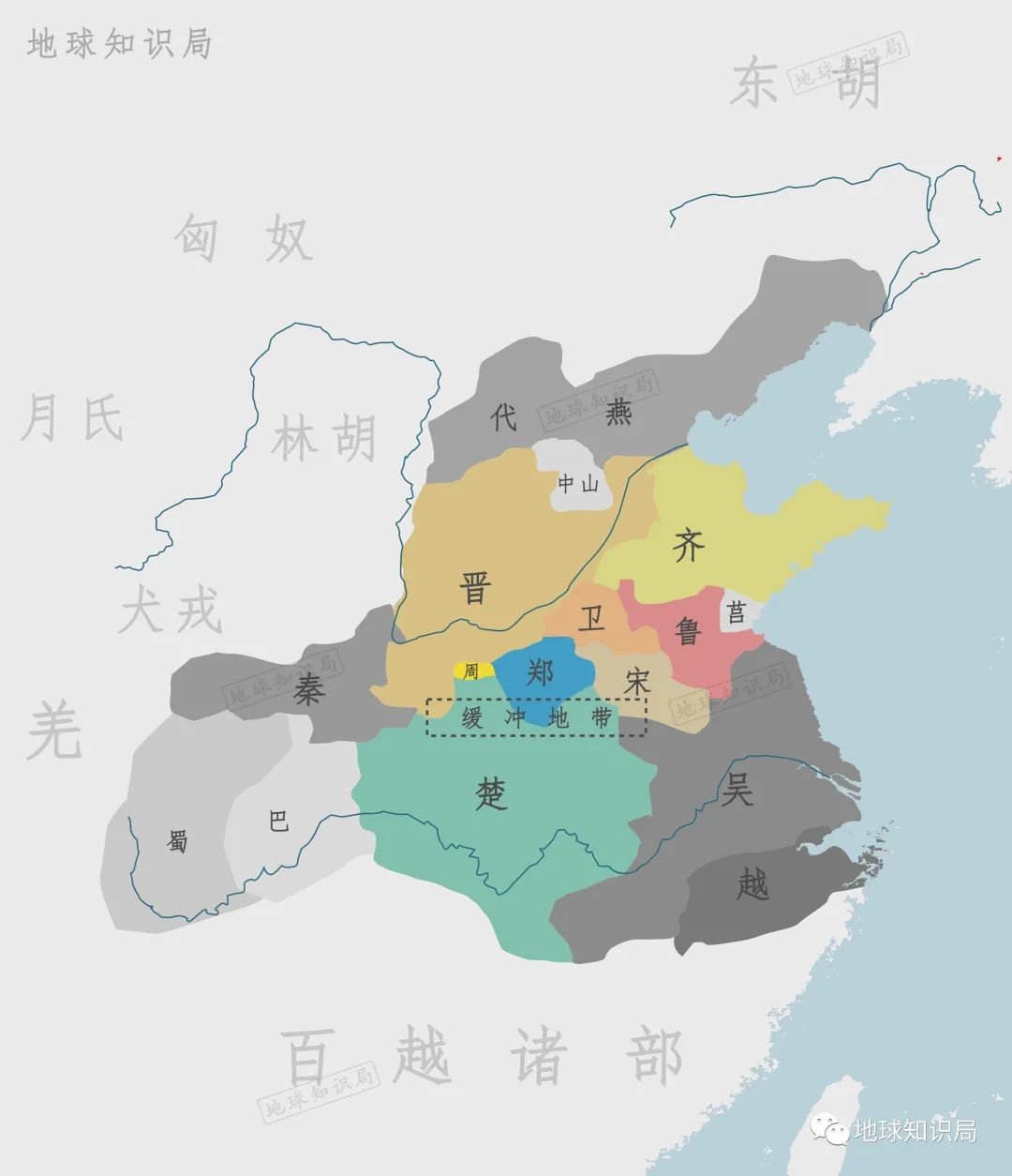 其余吴、越、巴、蜀4个国家,虽然在春秋战国时期发展出了强大的地方势力,有着不弱于中原诸侯的力量,但始终被视为是异族。