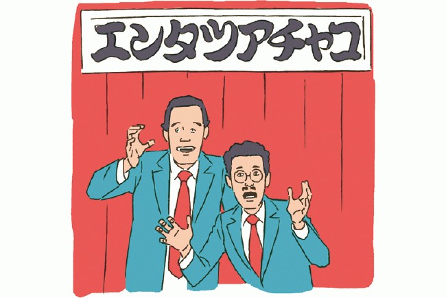 漫才通常由两人组合演出,一人负责担任严肃的找碴角色吐槽,另一人负责较滑稽的装傻角色耍笨。这种演出形式与我们相声中的对口相声极为相似,既一位逗哏演员,一位捧哏演员。相声我们喜闻乐见的一般都是对口,有时也有单口相声,漫才也有单人的演出,而单人的形式称为落语。