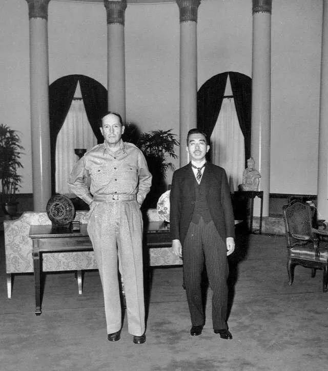 于是,一个历史性的会面便决定了裕仁天皇的命运,世界历史上也添上了几许神秘的色彩。1945年9月27日上午9时,裕仁头戴大礼帽,身穿燕尾服,亲自正式地晋见了美国五星上将麦克阿瑟将军,当时这位声名显赫的将军是盟军驻日本占领军的最高官员。在这次具有特殊意义的会见中,裕仁表现得体、态度坦然,勇敢地承认“对于日本政府的每一个政治决定和军事行动……我是唯一的责任者。”也正因如此,裕仁天皇给麦克阿瑟留下了非常好的印象,若干年后这位上将回忆起裕仁时曾说:“在当时,我感觉我面对着日本第一个当之无愧的有素养的人。”作为盟军驻日占领军总司令,麦克阿瑟指示裕仁否定日本注定统治世界的“大东亚”观点,维护世界和平,肃清国内黩武精神,另外否定天皇的神圣性,天皇由神回归为人。裕仁都一一照办。