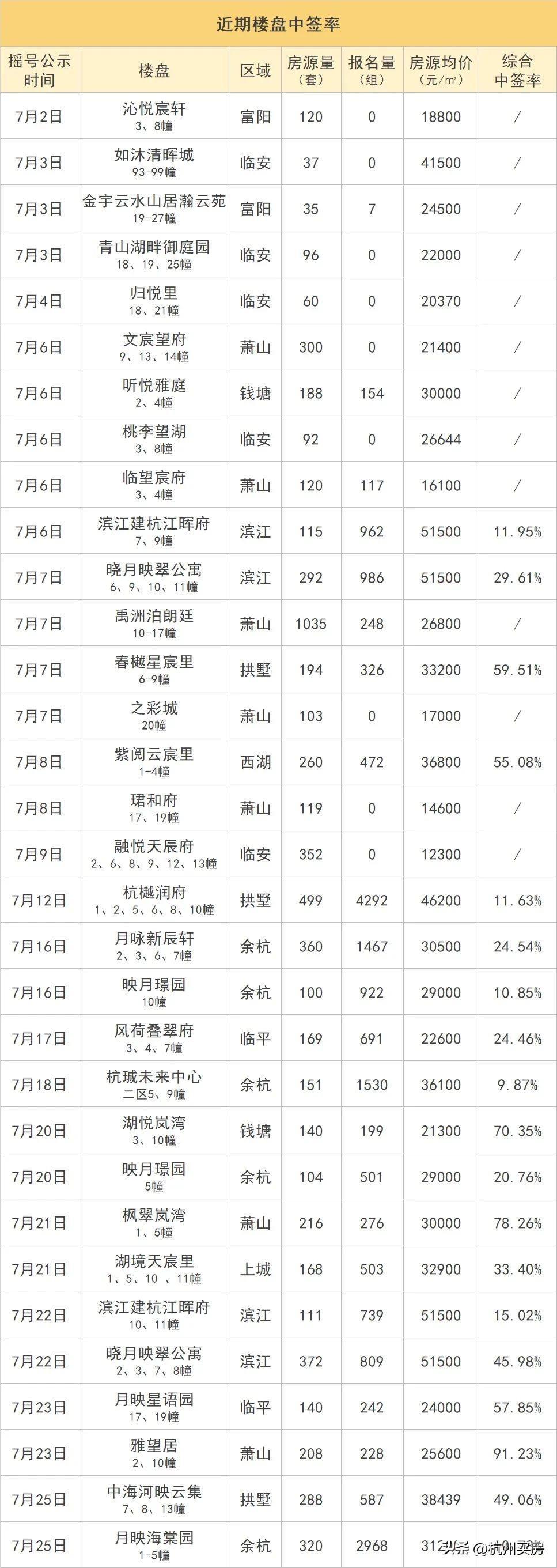杭州曾经的热门板块,中签率大幅提升。