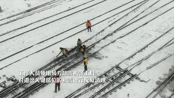 中国铁路哈尔滨局集团有限公司以雪为令,立即组织人员对道岔关键部位的积雪进行反复清理,全力保障铁路行车安全。