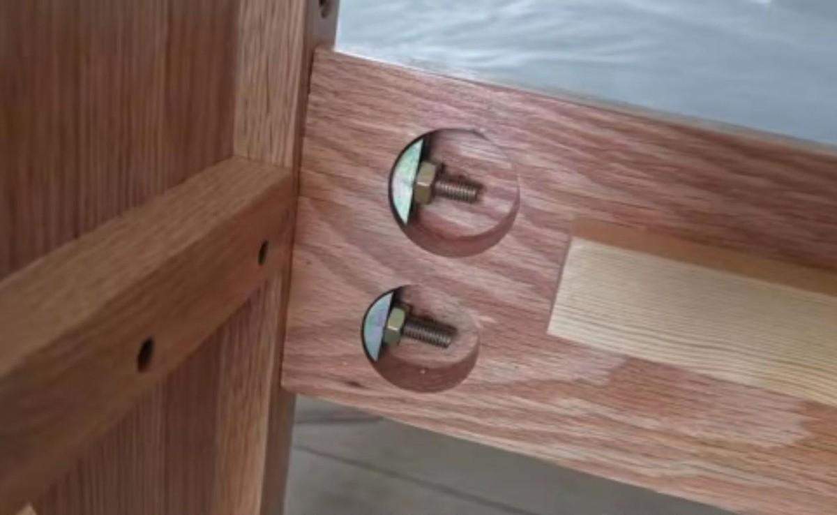 两块相邻床边之间的卡扣,要么选1mm厚度的铁片,要么就是用实木月牙锁,这样就能保证承重性,保证坚固耐用性。
