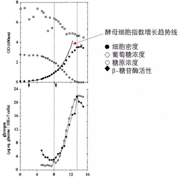 英国著名的演化生物学家理查德·道金斯的生物类科普著作——《自私的基因》,阐述了这样的核心观念,生物的行为是为了将基因保存传递下去,其他的个体目的不重要。而其中就提到了两个步骤:保存和传递。对酵母来说,外界环境合适,营养丰富,就要进行“传递”,即生长分裂;外界环境即将变得恶劣,就要进行“保存”,进入静止状态。在酿酒过程中,酵母会在指数增长速度放缓的时期开始积累糖原,在达到平台期2-3天接近最大积累量,一旦将酵母重新暴露在营养丰富的环境里,糖原又会被分解,并且不积累糖原。