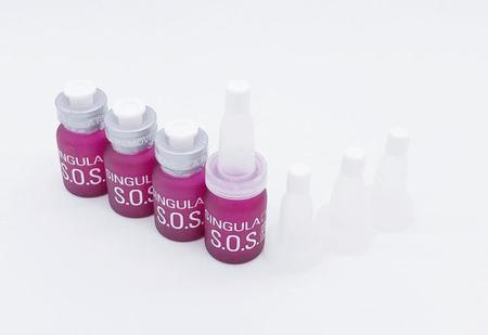 SOS安瓶主打的是六胜肽-3和四胜肽-22,六胜肽-3就是世界知名的Argireline,号称涂抹式的肉毒素,具有非常惊艳的紧致效果,在SOS这款产品当中Singuladerm把它的添加浓度搞到了20%,在全世界的所有同类产品当中都是最高的;四胜肽-22叫做Thermostressine,为了应对皮肤遭受的环境压力,人体的自身的防御机制会产生HSP蛋白,可以保护细胞免受进一步的损害并维持细胞的基本功能水平,那么四胜肽-22就可以促进这种HSP蛋白质生成,提高皮肤舒适度,增强活力, SOS安瓶当中这个成分的添加量到了2%,也是比较高的。