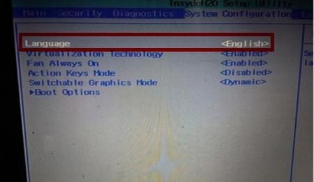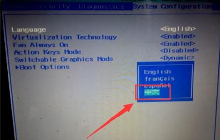 (2)进入系统后选择下方的“LANGUAGE”那个选项,然后确定