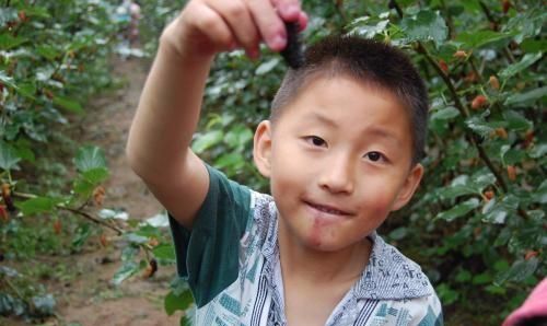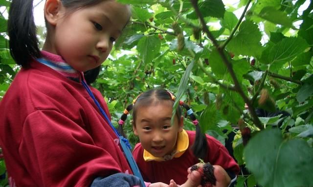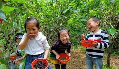 我当然比孩子们聪明了。第一种办法是用锄头把结果的桑树枝勾下来采摘。