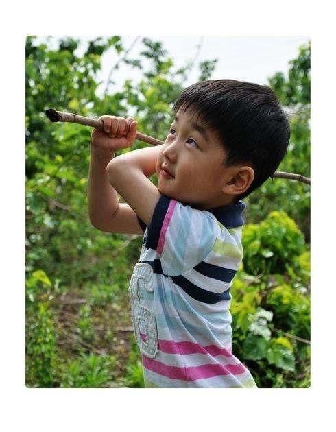 孩子们来了:小女孩上不去树,就用棍子敲;小男孩则脖子上挂两个矿泉水瓶,三下两下爬到了树上。???