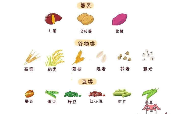 1、谷物类:玉米、小米、红米、黑米、紫米、高粱、大麦、燕麦、荞麦等。