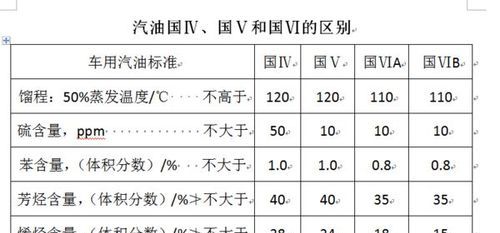 国五标准中汽油车的一氧化碳排放量是1000毫克/公里,国六标准是700毫克/公里。中国国民汽油对烯烃组分进行了更严格的处理,降低了油品中该组分的含量。还有就是芳烃的降低,汽油颗粒物的排放限值也降低了。