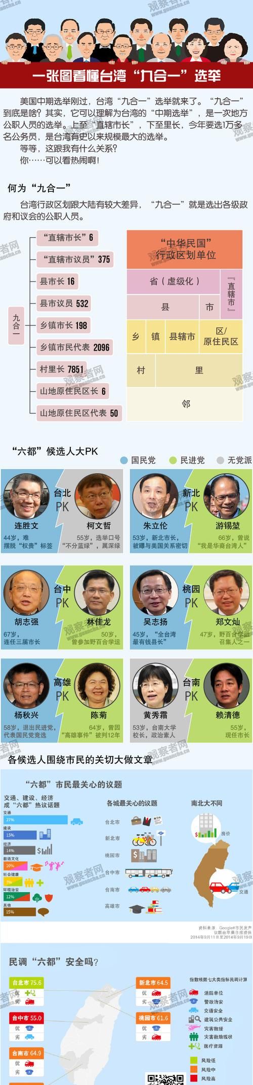 2014年11月29日,中国台湾规模最大的选举——“九合一”选举举行,会选出九种“地方公职”、11130位公职人员,22个县市全部改选县市长。