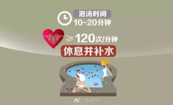 根据皮肤的承受能力,水温38~42℃最适宜,最高不要超过45℃,以免烫伤。泡汤的时间以10-20分钟为宜。如果汗流浃背,或是心跳急速加快,一分钟超过120下,就表示你泡过头了!可先起身休息5、6分钟,适当补充水分后,再继续第二回合泡汤。
