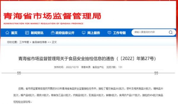青海省市场监督管理局/2022年青海省级监督抽检