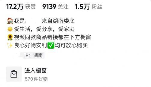 二姨已经停止更新那个带货账号,但带货视频积累太多,难以一个个隐藏删除,她也就没再考虑再次使用那个账号,而是继续在小号更新一些日常内容,原来的橱窗也还挂着商品,偶尔还能看见一两单佣金入账。