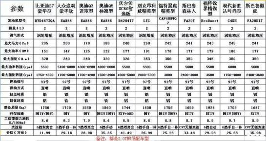 这里列入比较的是2014年匹配了2.0TI动力组合的SUV,当时自主品牌只有BYD的2.0TI发动机是直喷+涡轮增压,陆风X5和江淮S5也是2.0T的发动机,但是这2款发动机都是多点电喷,不是直喷,性能差的很远,所以没有列入比较。