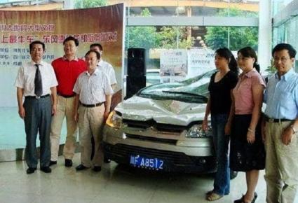 经过在网上的发酵,这辆破损严重的汽车也被当时的网民称为“史上最牛车”。