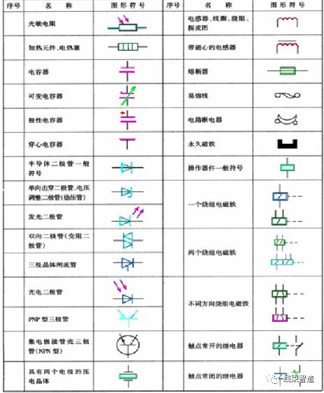 电路图本身就是表达元件之间的连接关系的,因此,电器元件在电路图中是主体。电器元件在图中用框图附以相应的标号表示。每一个元件都有一个代号,如A,表示蓄电池;N,表示电磁阀等。电器元件的接线点都用标号标出,标号在元件上可以找到。