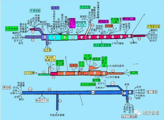 线束是由同路的导线包扎而成,可使线路不凌乱,便于安装,而且起到了保护导线的作用。