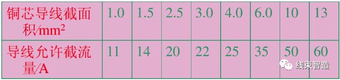 导线的截面积根据所用电气设备的电流值确定。为保证导线有足够的机械强度,规定截面积不能小于0.5mm²。