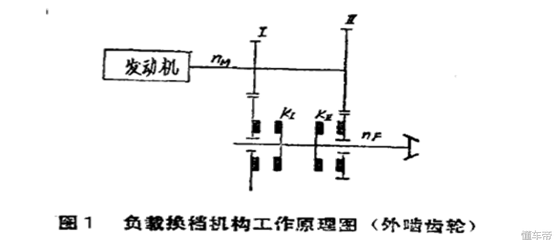 如果两个离合器协调地工作, 如原来接合的离合器(K1)逐渐分离, 它所传递的(Ⅰ档) 动力逐渐减小, 而原来分离的离合器(K2)逐渐接合, 传递的动力从零开始逐渐增加直到传递全部动力, 则动力从I 档换到了Ⅱ档, 两档传递的动力在换档过程中有一定的重叠, 因而动力在换档过程中并未中断。上述就是动力换挡变速箱的基本原理,当然,上述的换档过程必然伴随着离合器摩擦片的打滑。