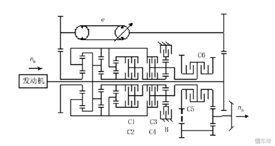 和ZF无极变速的区别:一个是吧行星机构作为合流工具,一个是功率分流工具。