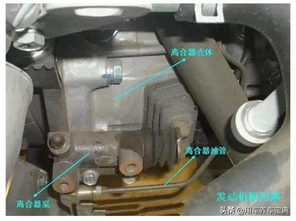 离合器总泵:离合器总泵,是连接在离合器脚踏板并通过油管与离合器助力器连接的部分。踩下离合踏板时,连接在踏板上的离合器总泵会动作,产生液压力,沿管路传递到离合器泵上,最后转化为机械力分离离合器。