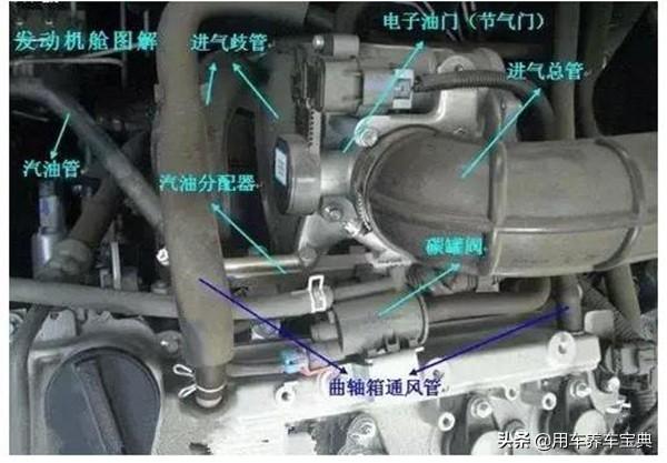 汽油分配器:将汽油分配到各个喷油嘴上,它的下面连接的就是喷油嘴,都被挡住了看不见,所以在找的时候要留意。