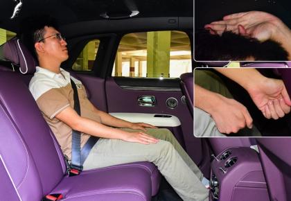 第二排座椅为乘客准备了两张舒适的靠枕,它不像一些车型上的软垫一样像个后加装的物品一样将脖颈向前推位置非常合适,靠上去就不想离开。虽然没有选配娱乐系统,这台标准轴距的古思特还是给后排乘客准备了电动收折的小桌板,表面由实制成结实美观,用来处理事务再好不过。