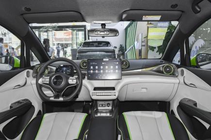 配置方面,糯玉米三款车型均配备了主/副驾驶座椅安全气囊、后倒车雷达、倒车影像、上坡辅助、手机APP远程控制、大灯延时关闭等功能,所以没有高低配之分,区别只在于续航的长短。和内饰一样,它的配置也提供了选装包,多花4000元可以买到LED日行灯、副驾驶座椅礼让、智能钥匙、无感进入、一键启动、电动隐藏式门把手和外后视镜电动调节。