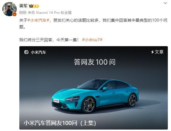 【CNMO 新闻】1 月 8 日,小米汽车答网友 100 问(上集)出炉,其中针对不少网友关心的问题给出了回应。
