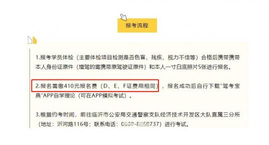 临沂考取摩托车驾照,报名需缴410元报名费(D、E、F证费用相同);
